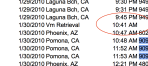 Excerpts from Joseph McStay phone log spanning November 2009 – February 4, 2010