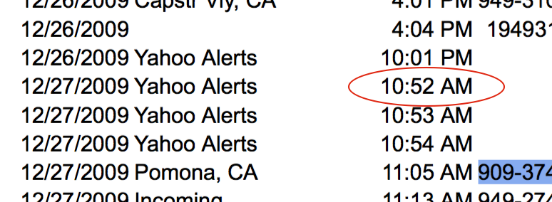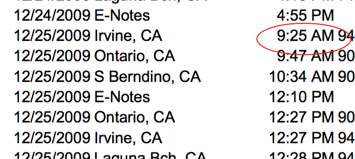 But there are days in the published phone log of Joseph McStay, where he is not on his cell phone until sometime between 9AM & 11 AM. Caveat: Summer’s phone records have never been published, so her habits are uncertain. And the McStay landline records and general computer usage are also not known to the general public. However we do know that the last call from Summer’s cell phone on February 4th was at 2:30PM; the last call from the McStay landline was at 4:15PM. If this phone usage was common, this might suggest that Summer was not on either the landline or her cell phone that often. No where as often and Joseph McStay, who used his cell phone for business.
